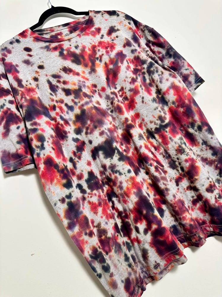 THIS PIECE OF WEARABLE ART IS READY TO SHIP AND A SIZE 2XL. SHE IS HAND DYED BY ME & INSPIRED BY SLASHER MOVIES & MURDER DOCUMENTARIES. MY TEESHIRTS ARE 100% SUPER SOFT COTTON & CLASSIC UNISEX SIZING. PLEASE CONSULT SIZE CHART IN THE PHOTOS.