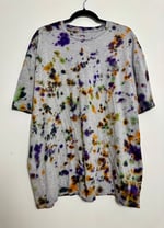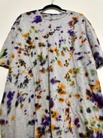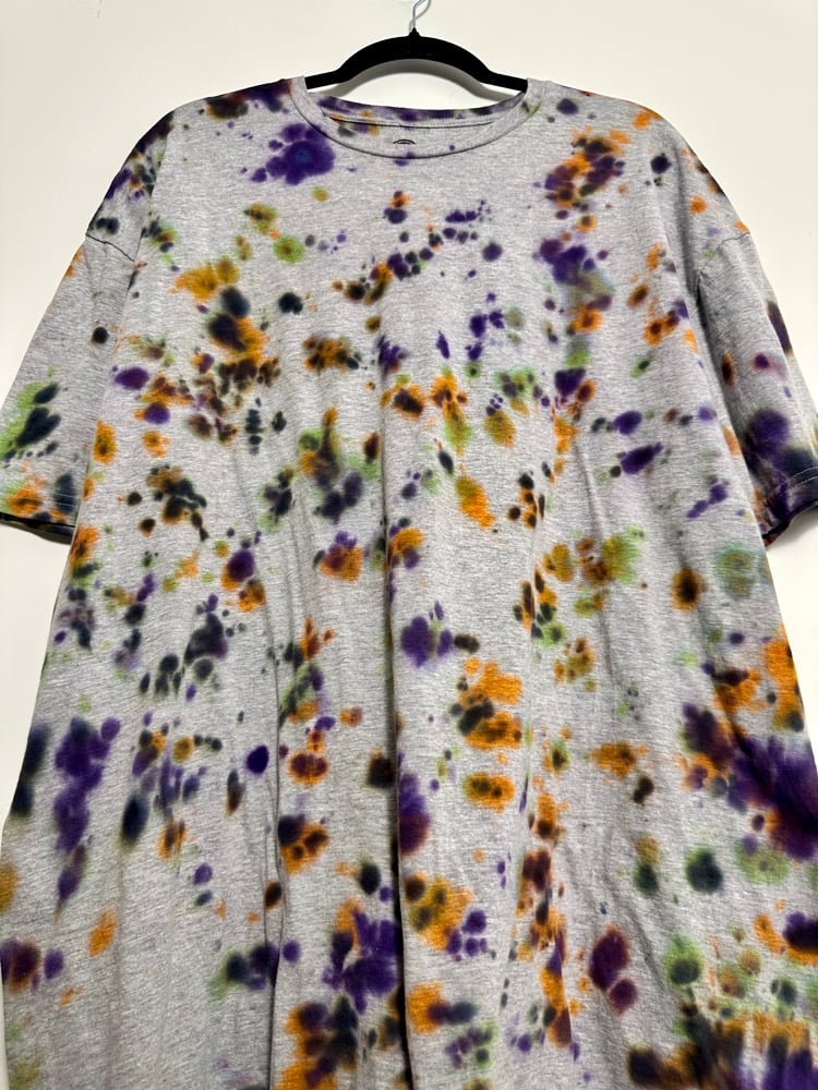 THIS PIECE OF WEARABLE ART IS READY TO SHIP AND A SIZE 2XL. SHE IS HAND DYED BY ME & INSPIRED BY 90'S HALLOWEEN VIBES. MY TEESHIRTS ARE 100% SUPER SOFT COTTON & CLASSIC UNISEX SIZING. PLEASE CONSULT SIZE CHART IN THE PHOTOS.