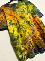 THIS PIECE OF WEARABLE ART IS READY TO SHIP AND A SIZE LARGE. SHE IS HAND DYED BY ME & INSPIRED BY PUMPKIN PICKING & JACK-O-LANTERNS. MY TEESHIRTS ARE 100% SUPER SOFT COTTON & CLASSIC UNISEX SIZING. PLEASE CONSULT SIZE CHART IN THE PHOTOS.