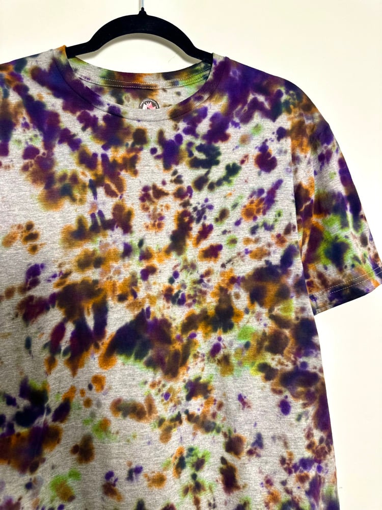 THIS PIECE OF WEARABLE ART IS READY TO SHIP AND A SIZE MEDIUM. SHE IS HAND DYED BY ME & INSPIRED BY 90'S HALLOWEEN VIBES. MY TEESHIRTS ARE 100% SUPER SOFT COTTON & CLASSIC UNISEX SIZING. PLEASE CONSULT SIZE CHART IN THE PHOTOS.
