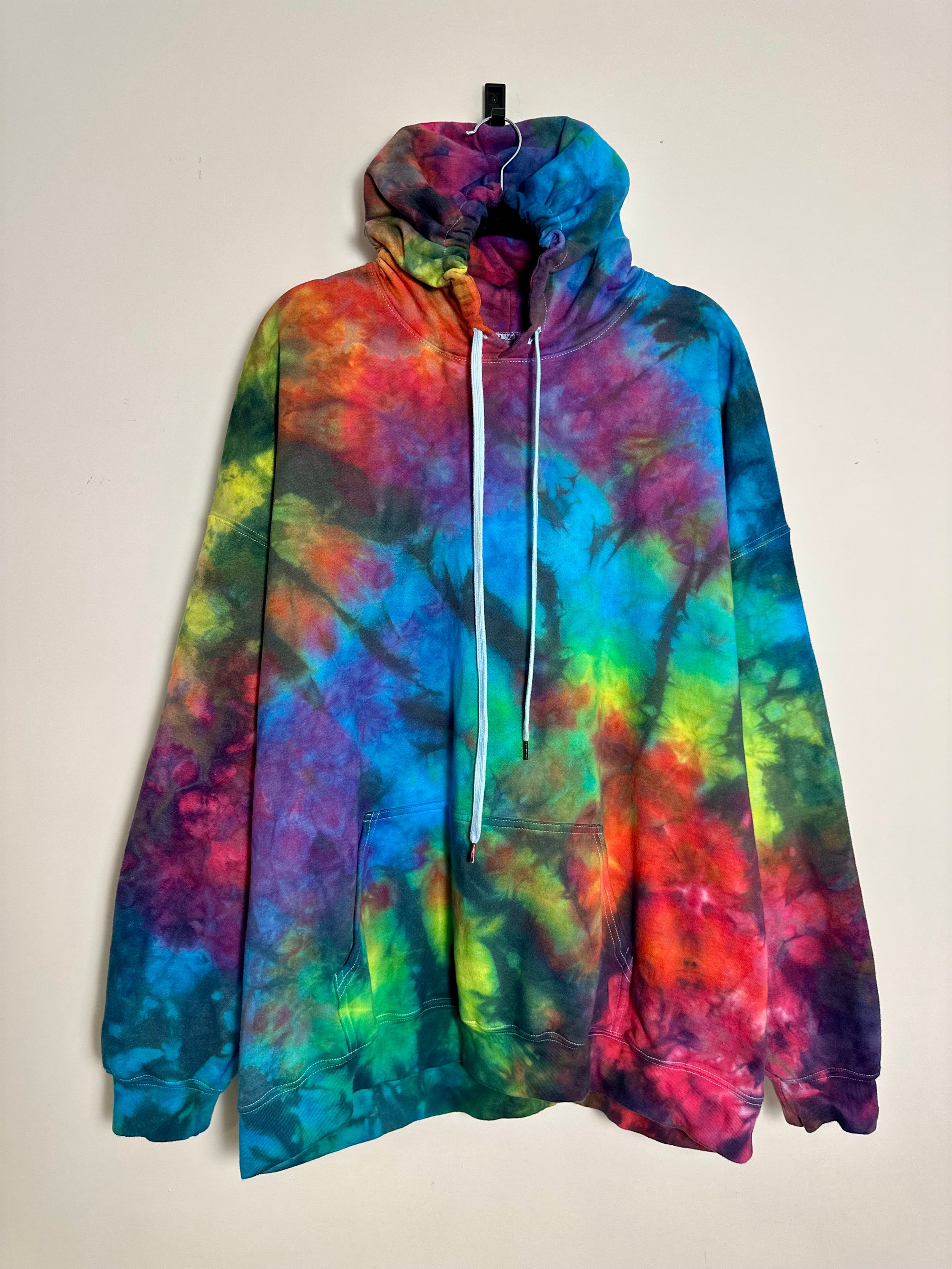THIS PIECE OF WEARABLE ART IS READY TO SHIP AND A SIZE 3XL. SHE IS HAND DYED BY ME & INSPIRED BY MY ORIGINAL LAST NIGHT COLORWAY. MY PULLOVER HOODIES ARE 100% COTTON & CLASSIC UNISEX SIZING. PLEASE CONSULT SIZE CHART IN THE PHOTOS.