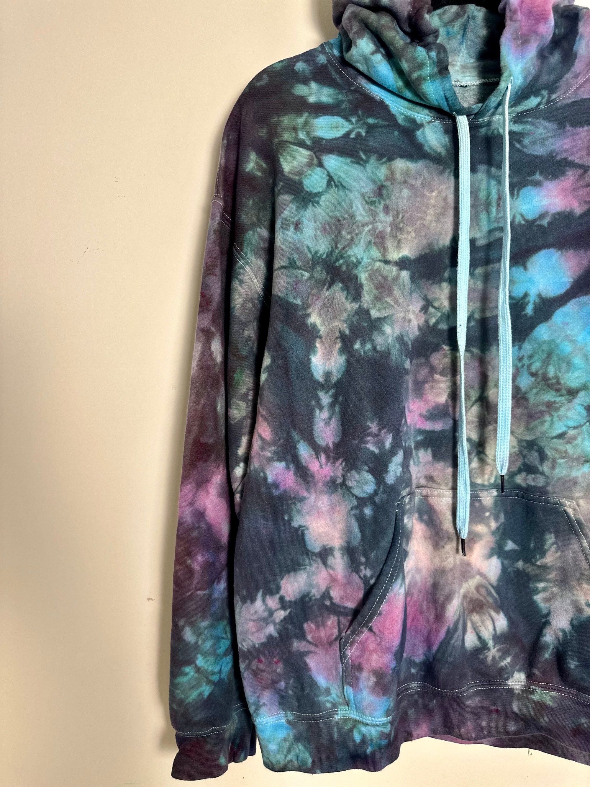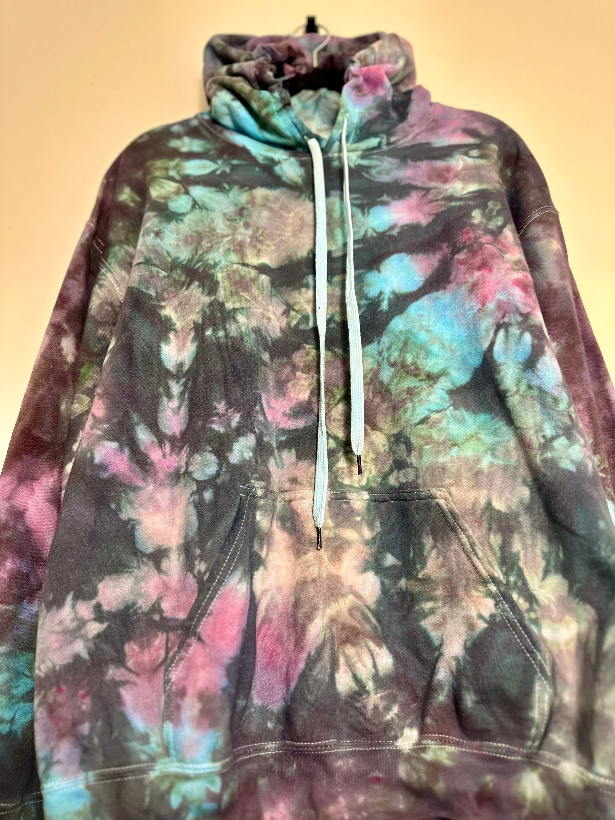 THIS PIECE OF WEARABLE ART IS READY TO SHIP AND A SIZE LARGE. SHE IS HAND DYED BY ME & INSPIRED BY MY ORIGINAL SMOKE COLORWAY. MY PULLOVER HOODIES ARE 100% COTTON & CLASSIC UNISEX SIZING. PLEASE CONSULT SIZE CHART IN THE PHOTOS.