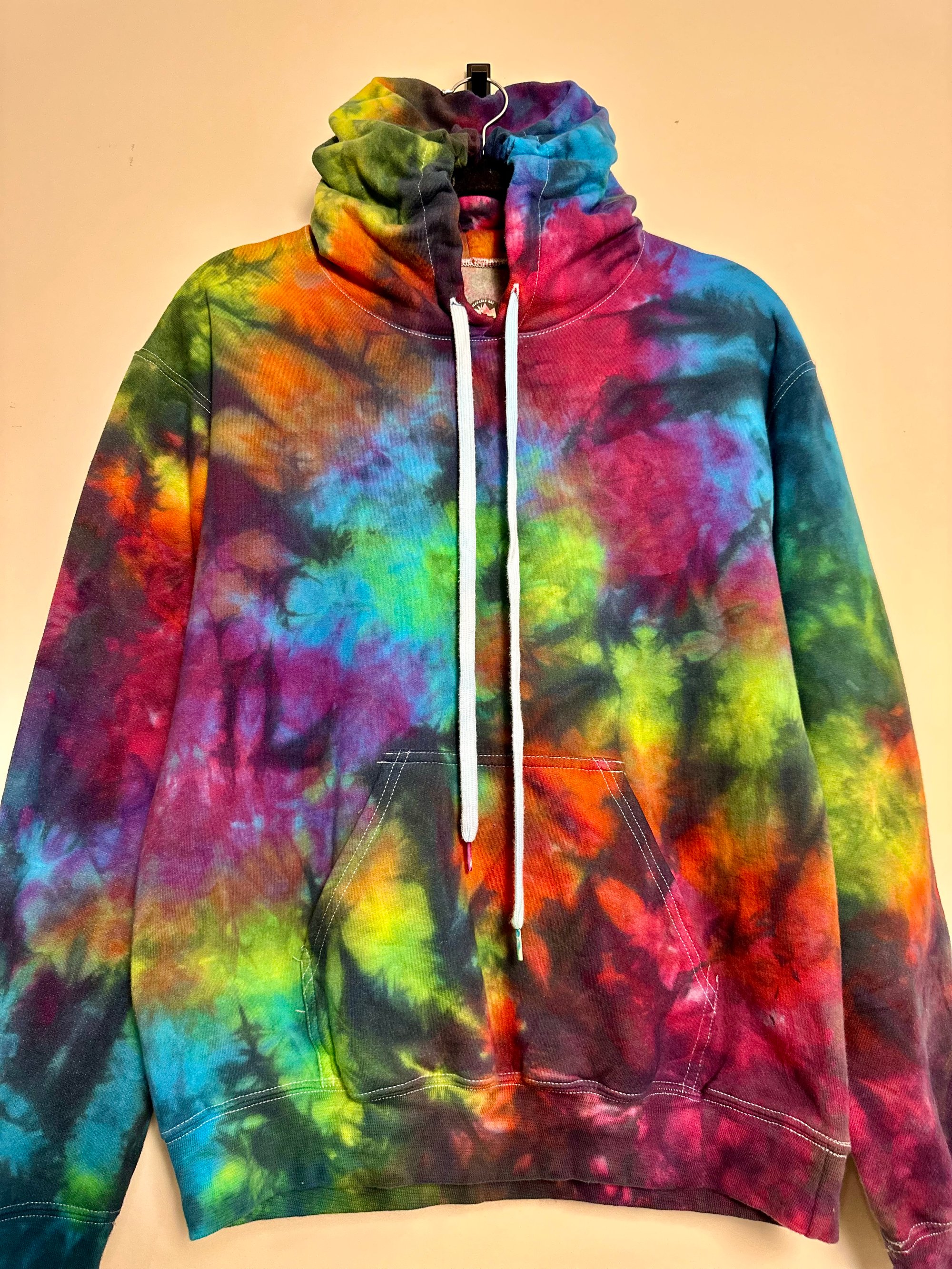 THIS PIECE OF WEARABLE ART IS READY TO SHIP AND A SIZE SMALL. SHE IS HAND DYED BY ME & INSPIRED BY MY ORIGINAL LAST NIGHT COLORWAY. MY PULLOVER HOODIES ARE 100% COTTON & CLASSIC UNISEX SIZING. PLEASE CONSULT SIZE CHART IN THE PHOTOS.
