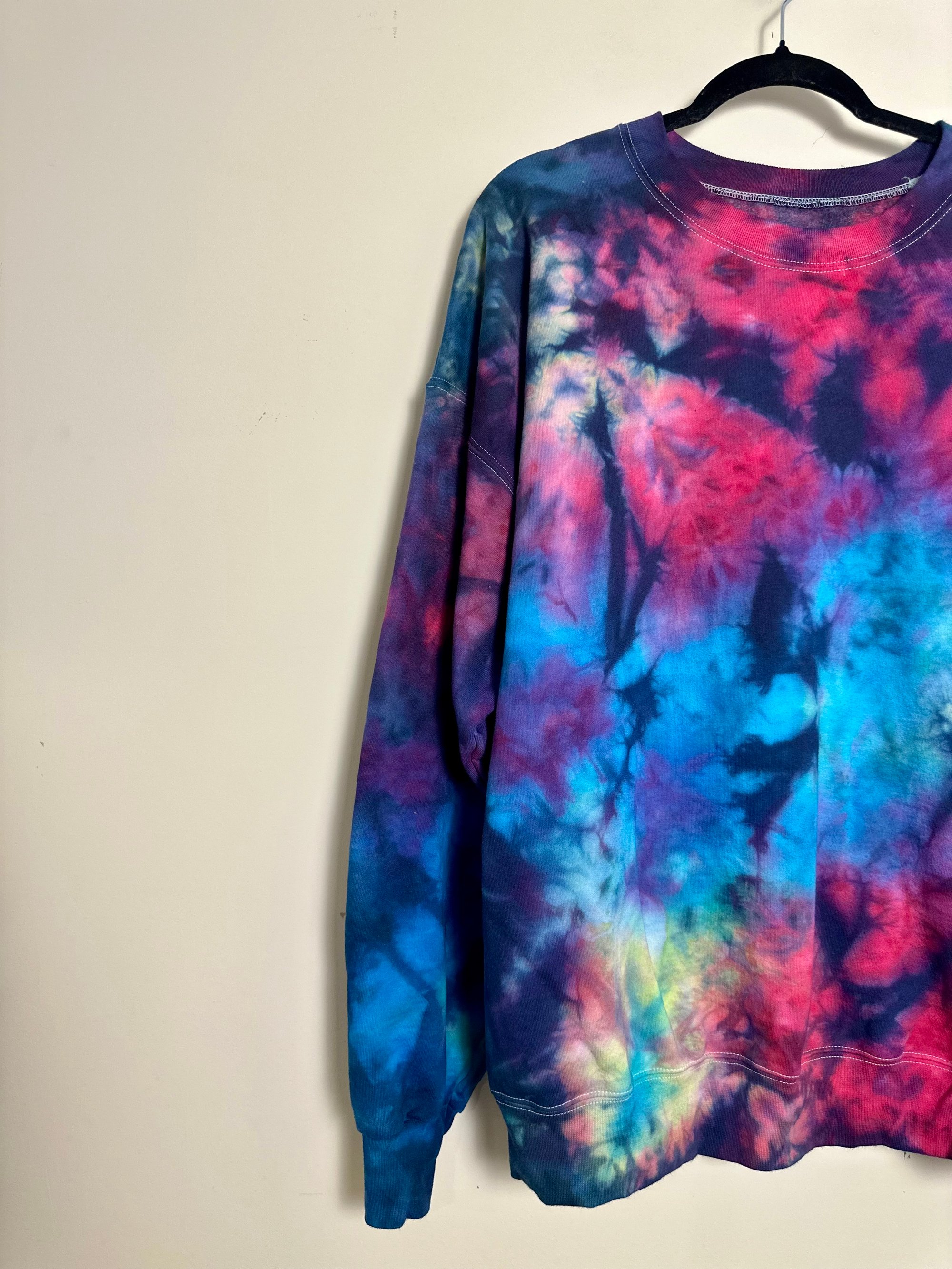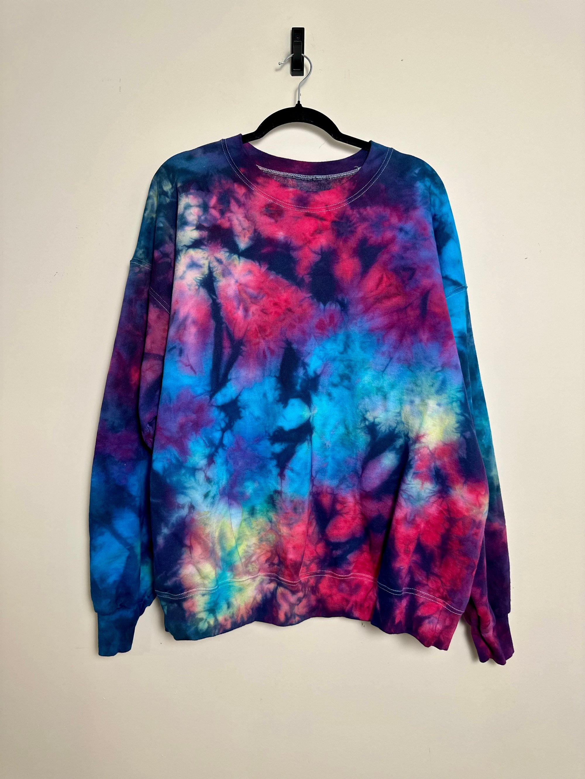THIS PIECE OF WEARABLE ART IS READY TO SHIP AND A SIZE XL. SHE IS HAND DYED BY ME & INSPIRED BY MY ORIGINAL LAST NIGHT COLORWAY. MY BEST SELLING CREWNECK SWEATSHIRTS ARE 100% COTTON & CLASSIC UNISEX SIZING. PLEASE CONSULT SIZE CHART IN THE PHOTOS.